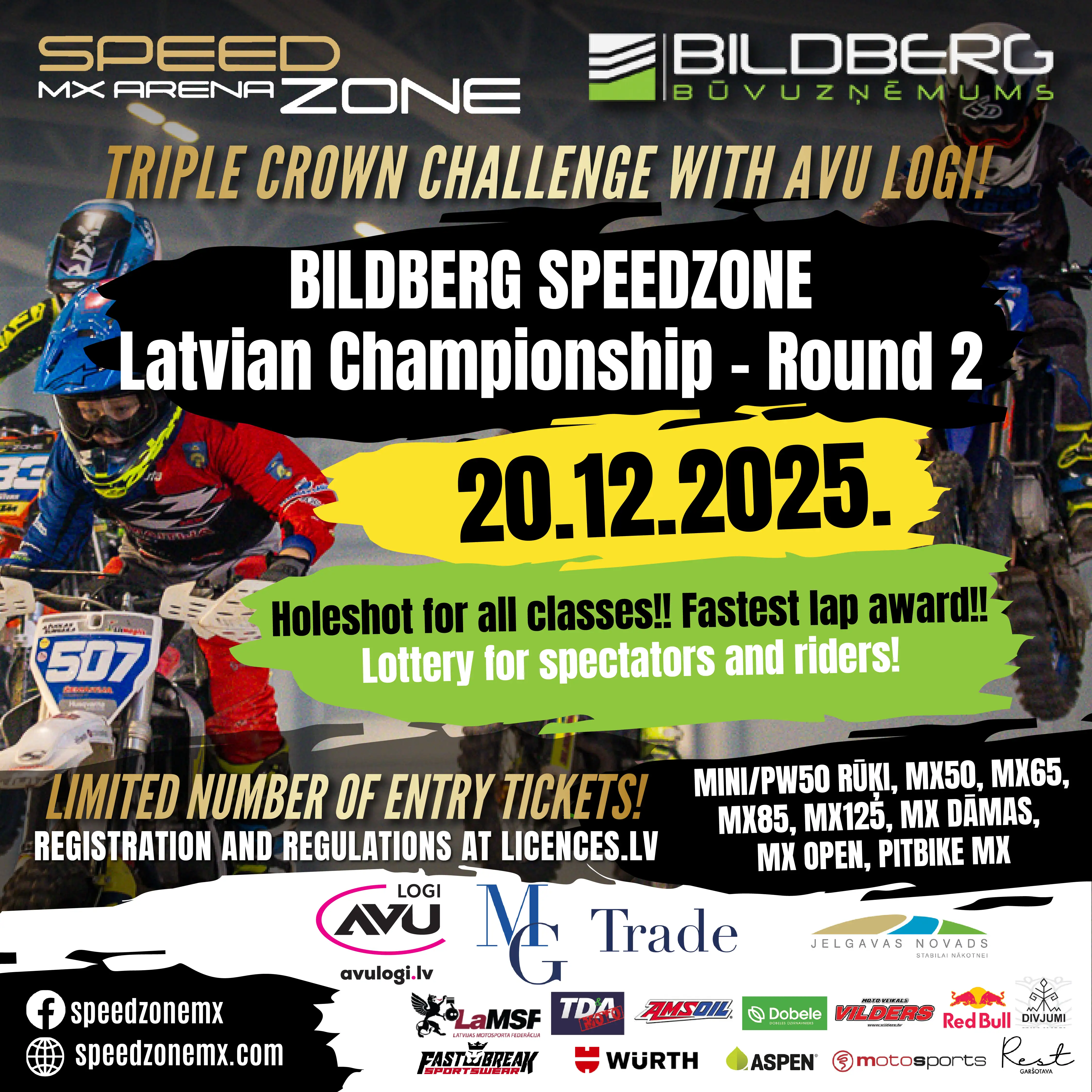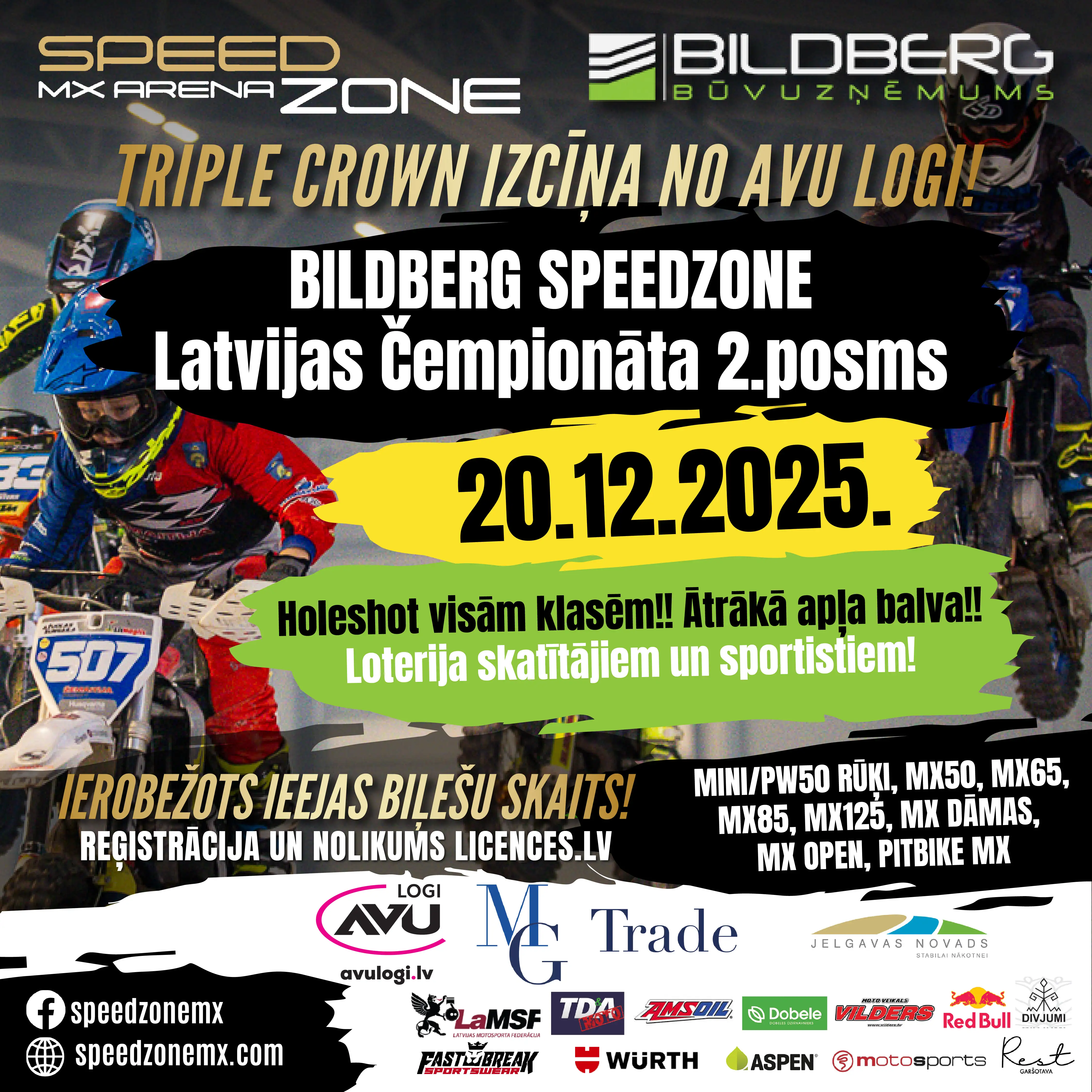 Trenējies, sacenties vai īrē SpeedZone MX arēnu Jelgavā. Ideāli piemērota MX50–MX1, pitbike un kvadru klasēm.